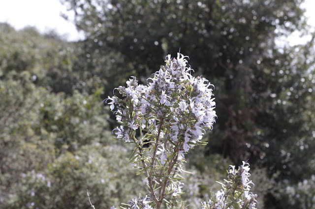 Det är en relativt kort vandring på 6 km som går i en slinga runt ett berg och den går delvis på GR5. Halvvägs fortsätter vi på GR5 i riktning mot Nice. Det visar sig att vi gått fel och måste vända tillbaka. Nåväl, vi har gott om tid och det är vackert med utsikt mot Medelhavet. Rosmarin och slånbär blommar.